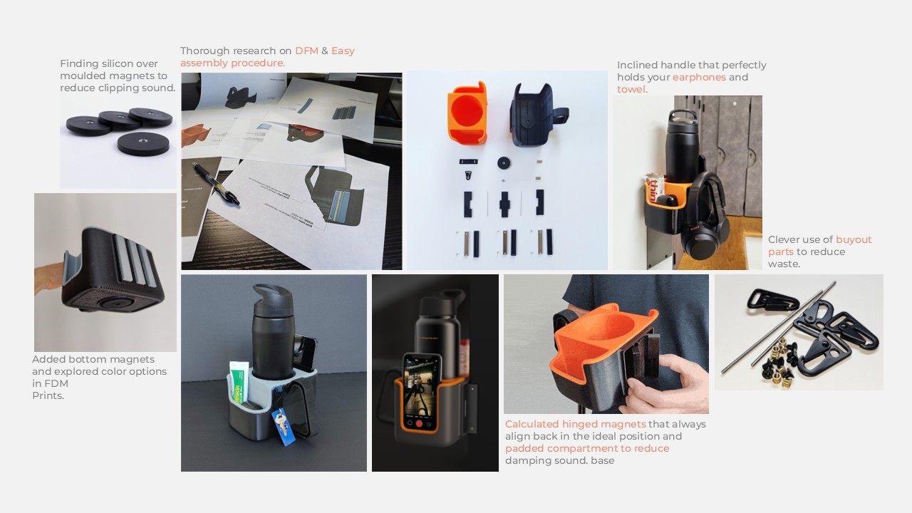 The gym has no place to put our essential items while performing a set. The pockets are too small, the frame of the machines is too narrow, the benches are sweaty, and the floor is filthy. My problem has been the same for years, and I thought there must be a better way.